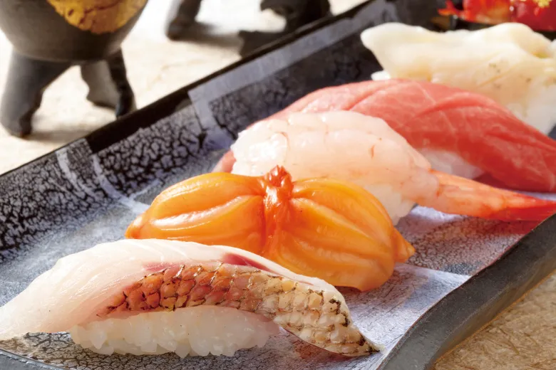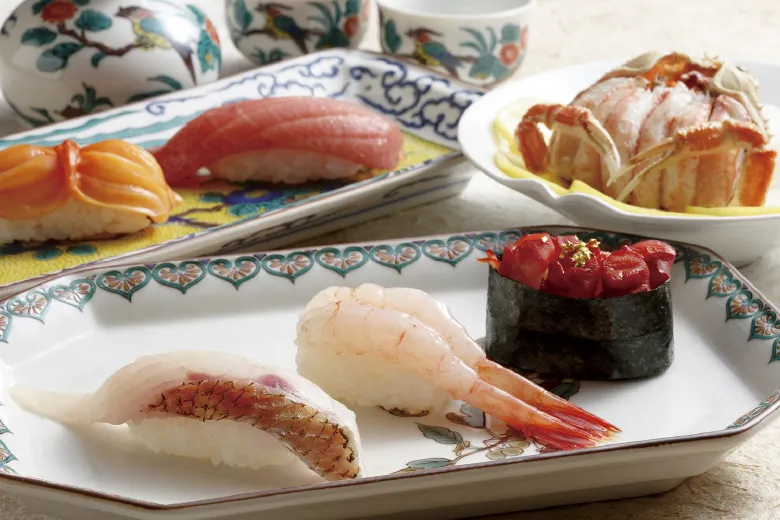 Kagamae style sushi. Taste the fresh seafood from the Sea of Japan in the city's yokochyo.